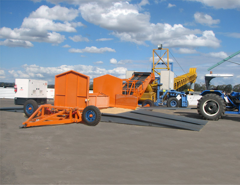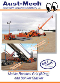 Highly mobile or fixed drive over receival grids designed for high capacity, quick and convenient unloading of trucks including B doubles and road trains. Unique all belt design ensures gentle handling, safe and smooth operation and self cleaning between loads. Available in a range of sizes and configurations to suit your application